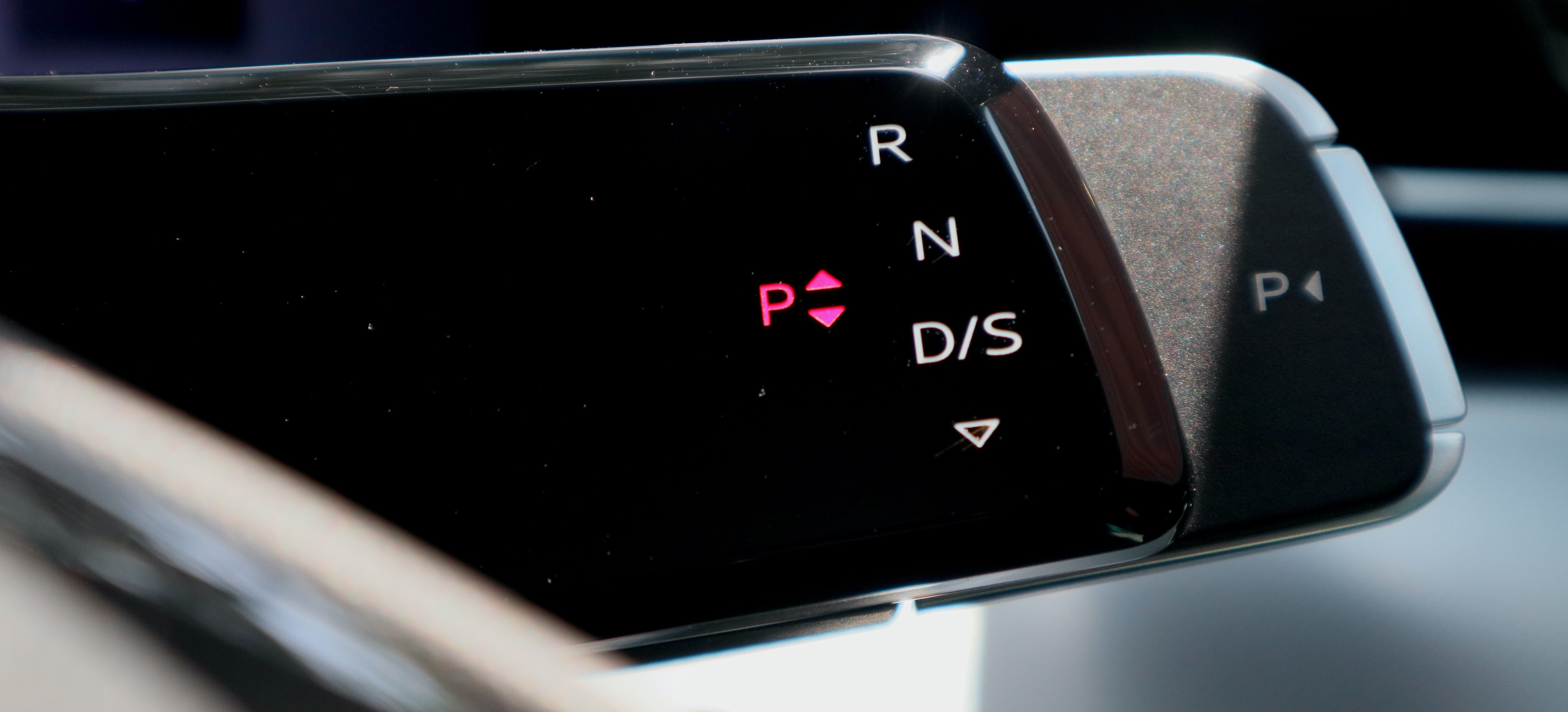 One unusual - Audi is onto something here - feature in the new Audi Q3 is its rethought steering-column control layout. Instead of the usual gear selector on the centre console, Audi has relocated it to a compact lever on the right side of the steering column: Push down for Drive, up for Reverse, and press the end for Park.