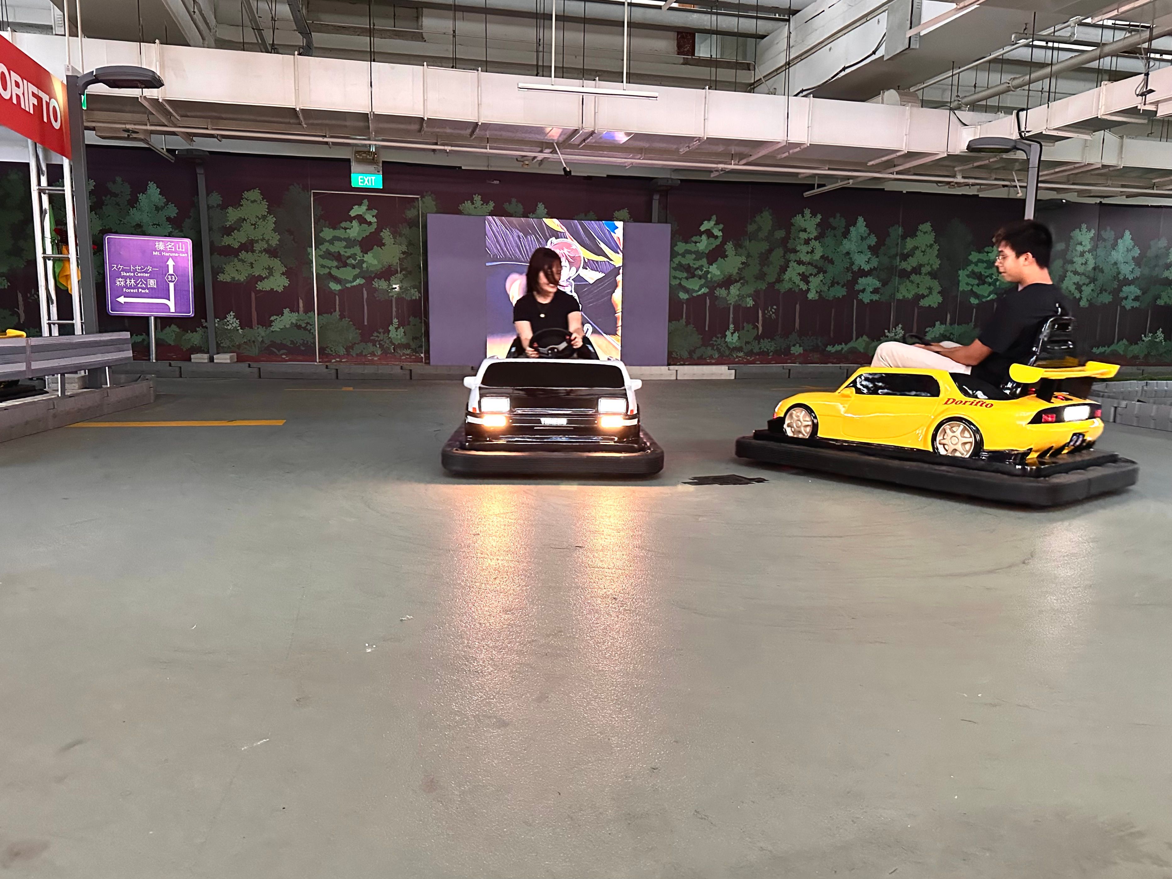 Located on carpark Level 6A, the facility draws inspiration from Japan’s touge mountain roads, reimagined into a controlled indoor environment where participants can experience drifting in a safe and accessible format. The concept centres on purpose-built mini drift cars, allowing users of varying skill levels to “go sideways” without the risks typically associated with motorsport.