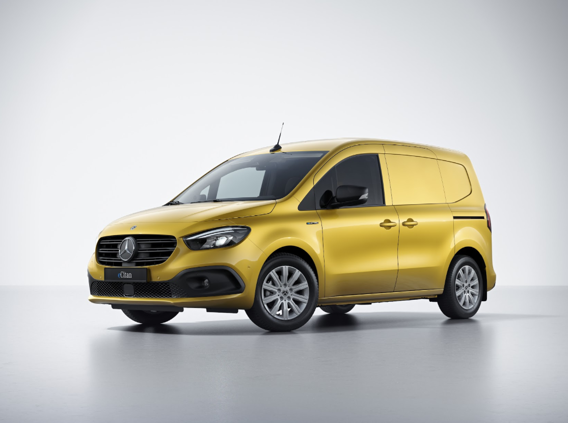 eCitan is a fully electric panel van built for urban courier and delivery use, offering up to 300km of range (WLTP) and fast charging from 10% to 80% in 38 minutes. It features a spacious 4.2 m³ cargo area, 690kg payload, wide sliding doors and a low loading sill for easy access. Inside, it comes equipped with the MBUX multimedia system and a 9.5-inch touchscreen.